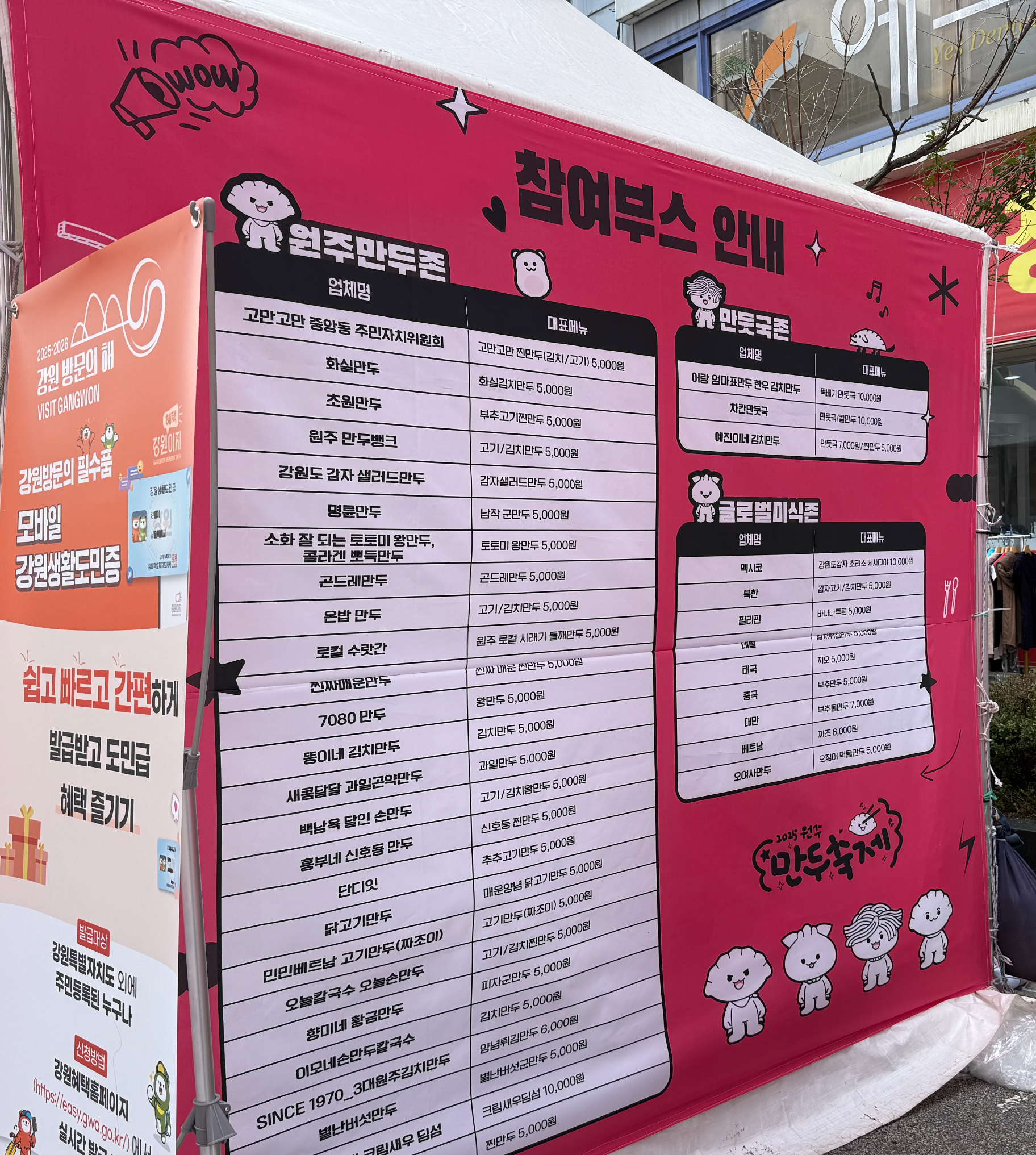 부스는 원주만두존, 만둣국존, 글로벌미식존(외국만두)으로 컨셉이 나눠져 있었는데,